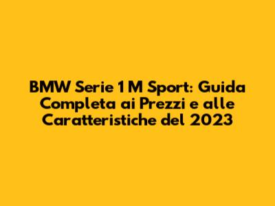 Ciao amici appassionati di motori! Se siete qui, probabilmente vi state chiedendo quanto costa una BMW Serie 1 M Sport nel 2023 e cosa rende questa macchina così speciale. Beh, siete capitati nel posto giusto! In questa guida completa, esploreremo a fondo il prezzo della BMW Serie 1 M Sport, analizzando i fattori che lo influenzano, le diverse versioni disponibili e, ovviamente, le caratteristiche che la rendono un'auto così desiderabile. Preparatevi, perché stiamo per immergerci nel mondo affascinante della BMW Serie 1 M Sport!