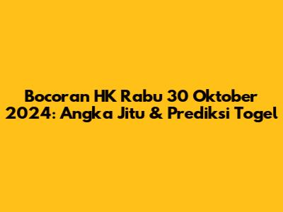Bocoran HK Rabu 30 Oktober 2024: Angka Jitu & Prediksi Togel