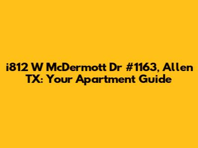 Hey there, apartment hunters! So, you're eyeing a place at i812 W McDermott Dr #1163 in Allen, TX? Awesome choice! This article is your ultimate guide, packed with everything you need to know about this spot. We'll dive into the nitty-gritty: the units, the amenities, the neighborhood vibes, and, of course, how to get in touch. Let's get started, shall we?